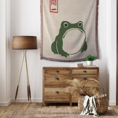 Infuse your space with the charm of traditional Japanese art with our Japanese Frog Woven Blanket, inspired by the iconic style of Matsumoto Hoji. Featuring a delicately detailed frog set against a serene natural backdrop, this design captures the harmony and simplicity of Japanese aesthetics. Crafted from a high-quality blend of cotton and polyester, this 50″ x 60″ blanket offers softness and durability. Use it as a cozy throw on your couch or bed, or hang it on the wall as a unique decorative statement. Perfect for lovers of Japanese art and nature, this blanket brings a touch of cultural elegance to your home.